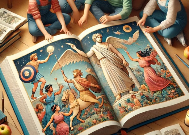 Com nossos materiais, as crianças poderão explorar um universo de aventuras, heróis e deuses, entendendo a relevância dessas histórias ao longo dos séculos